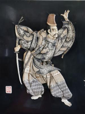 Panneau de laque ancien Japon samouraï signature