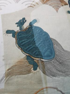 Japon 19eme superbe tenture broderie au fils d or a decor de tortue dragon # asie art asiatique expert chine japon indochine achat bandol antiquaire
