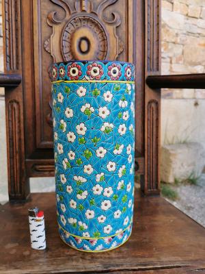 Barbotine debut 20e très grande jardinière cache pot art nouveau a décor de chardons et de libellule # dlg école de nancy, gallé daum muller schneider pate de verre verrerie